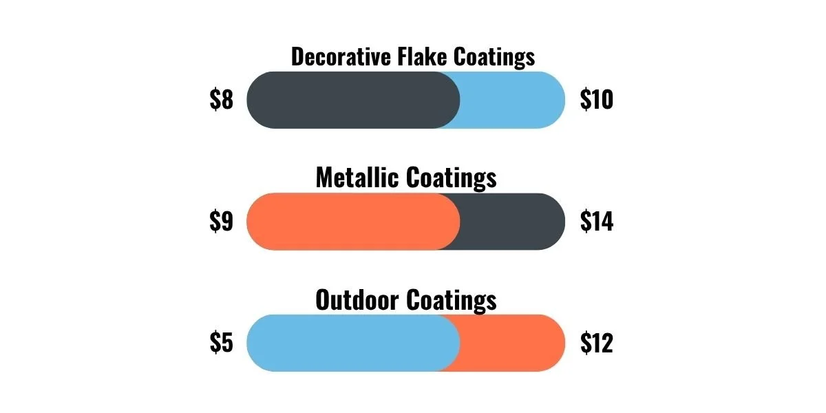 The type of coating you choose (flake, metallic, polyaspartic, etc.)